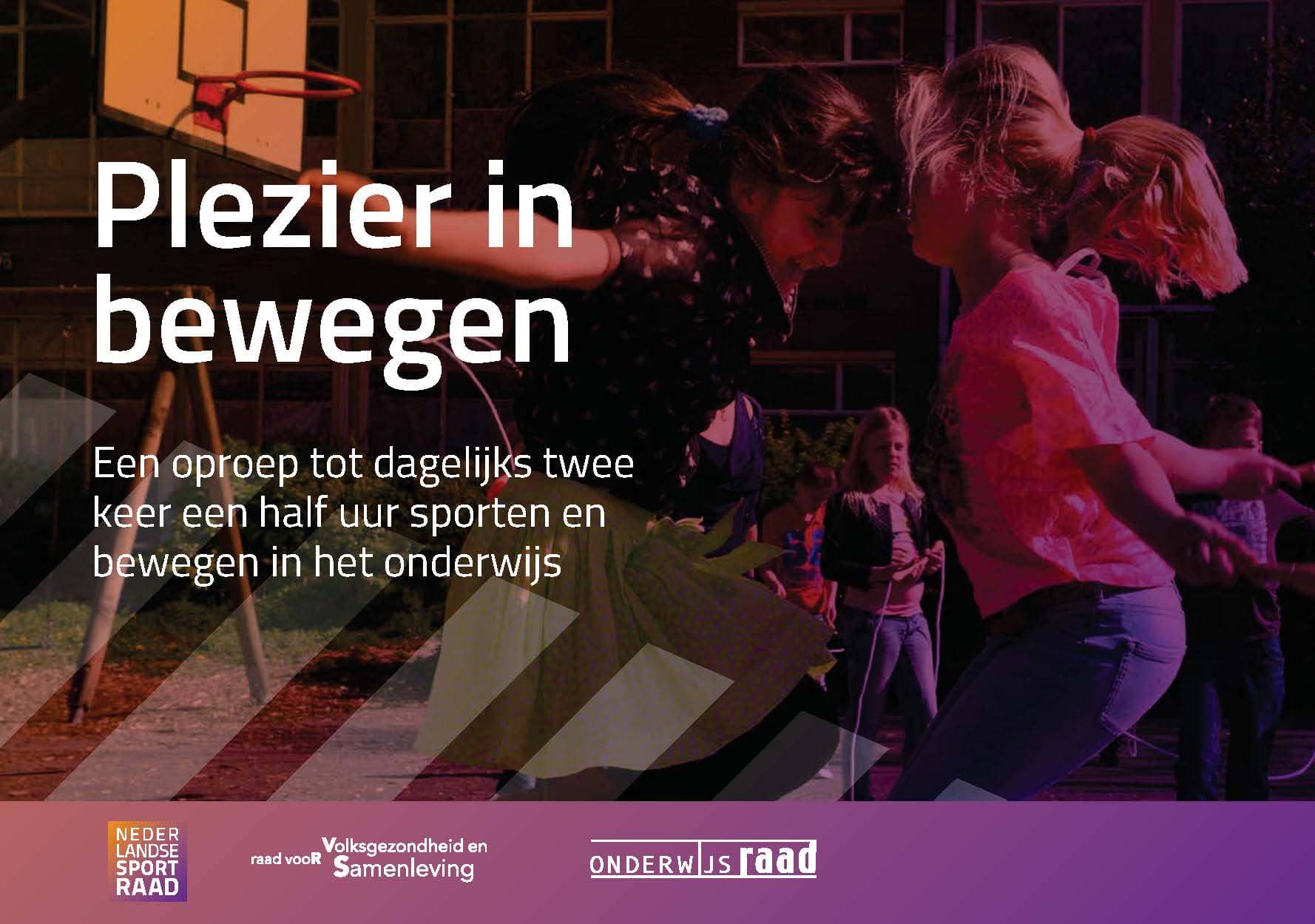 Het advies Plezier in bewegen roept op tot dagelijks tweemaal 30 minuten bewegen op school, voor een gezonde en gelijke start voor alle leerlingen.